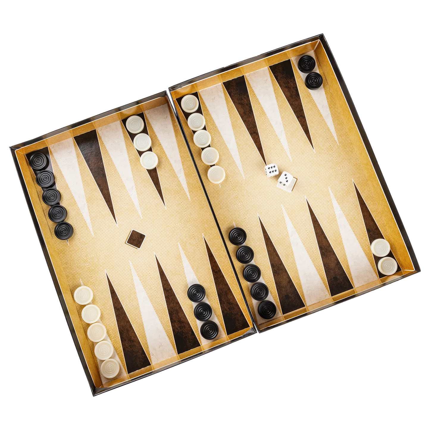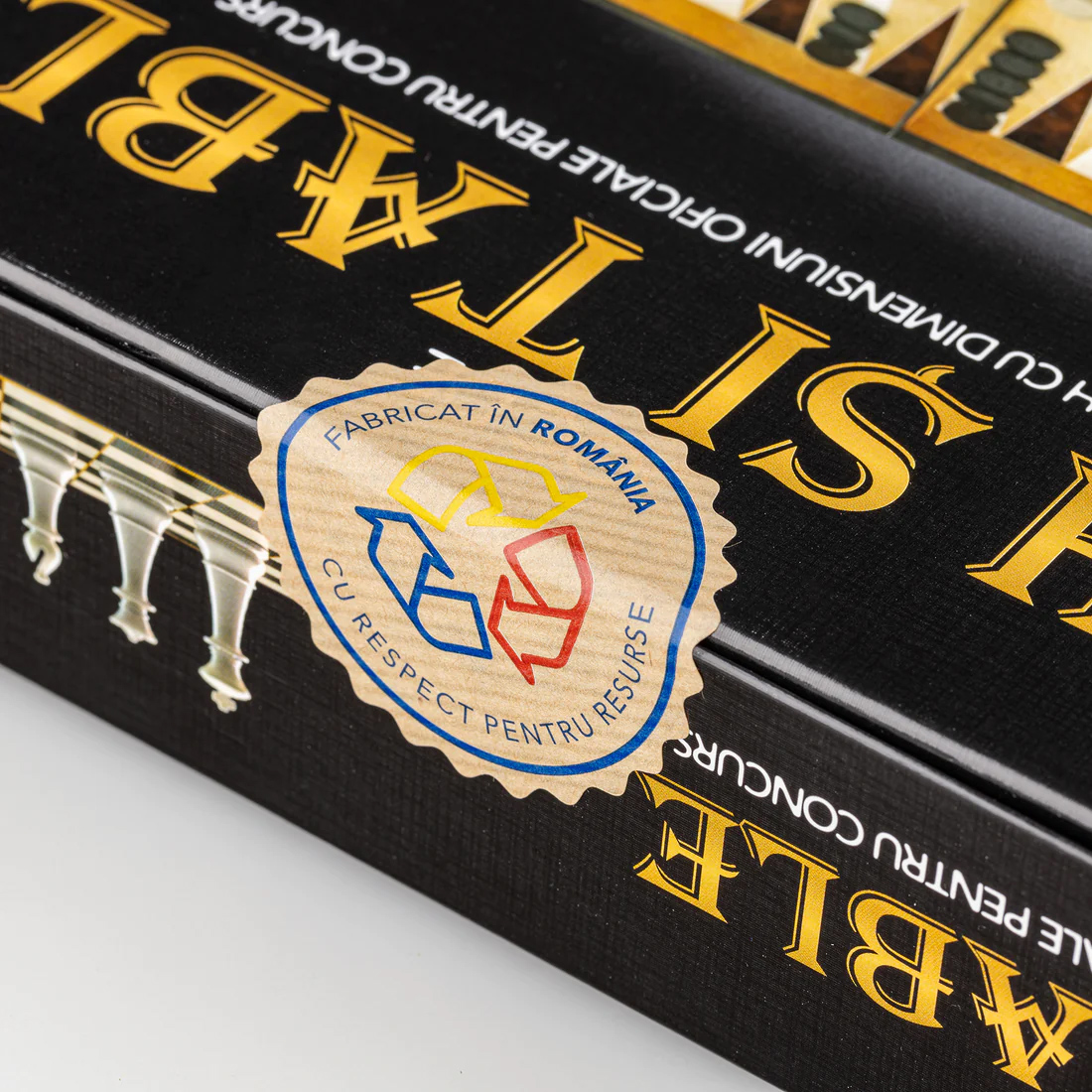 Conținut: 1 tablă de șah, 32 piese de șah, 30 de puluri de table, 2 zaruri, 2 perechi de discuri autoadezive cu sistem de prindere cu arici.