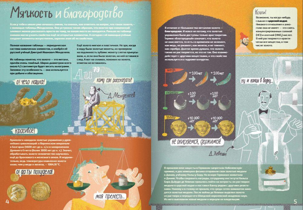 Ты узнаешь, насколько опасна золотая лихорадка, как найти золото, если его не видно, для чего в золотодобыче нужны пузырьки и электричество, что такое царская водка, почему некоторые руды такие упорные и многое другое. Тебя ждут драги и гигантские самосвалы, карьеры, подземные города и высокотехнологичные лаборатории.