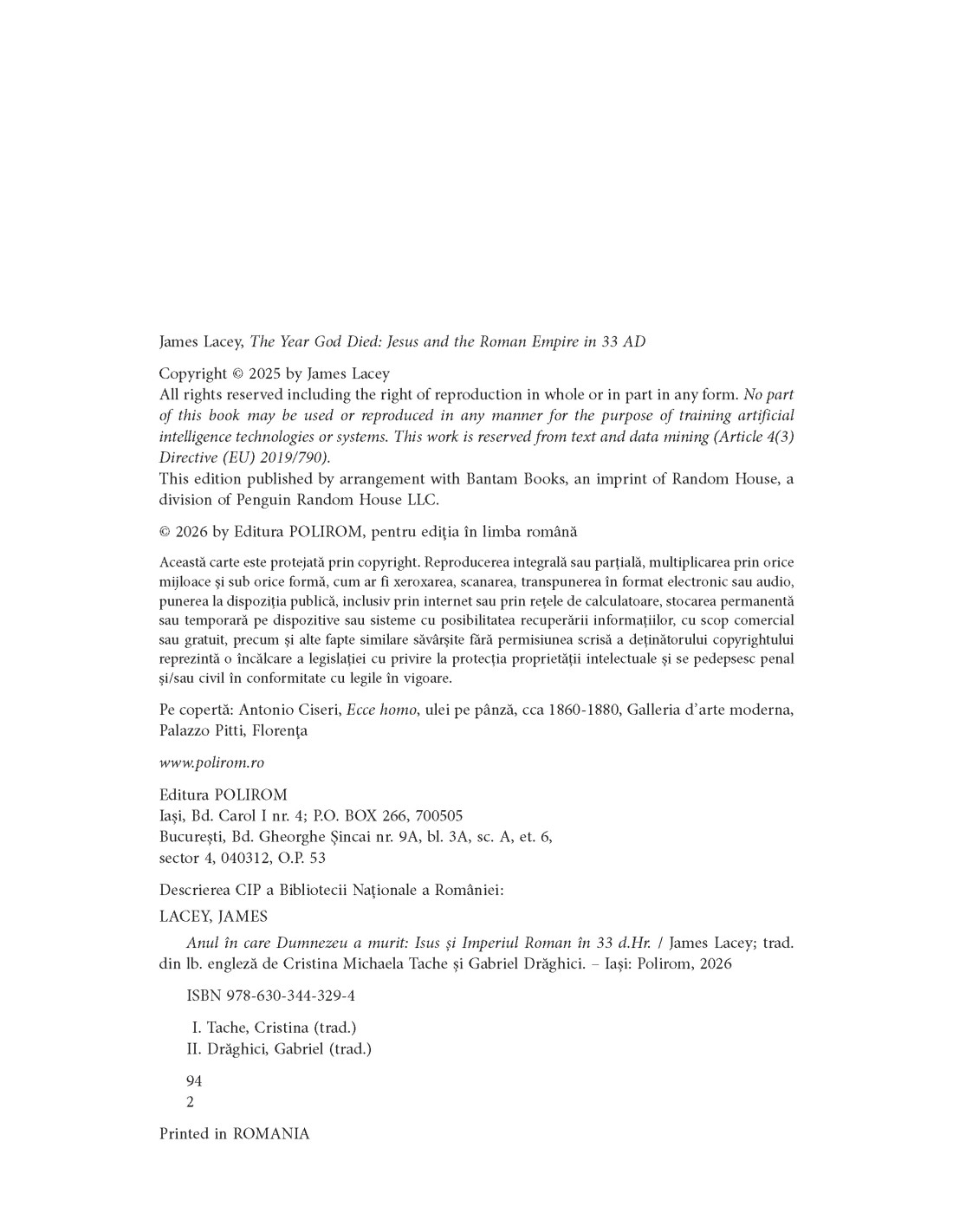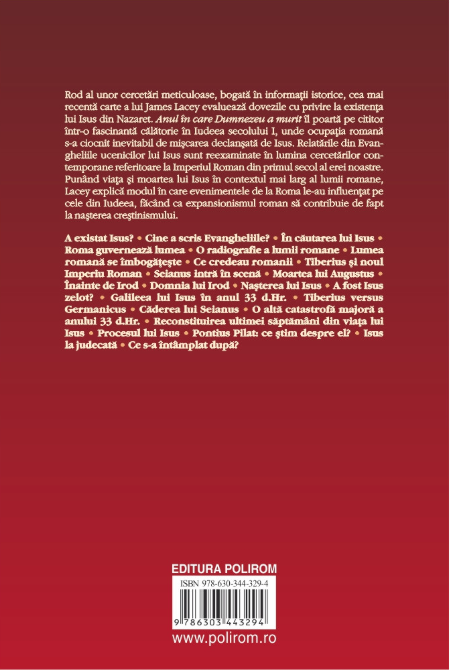 Punând viața și moartea lui Isus în contextul mai larg al lumii romane, Lacey explică modul în care evenimentele de la Roma le-au influențat pe cele din Iudeea, făcând ca expansionismul roman să contribuie de fapt la nașterea creștinismului.