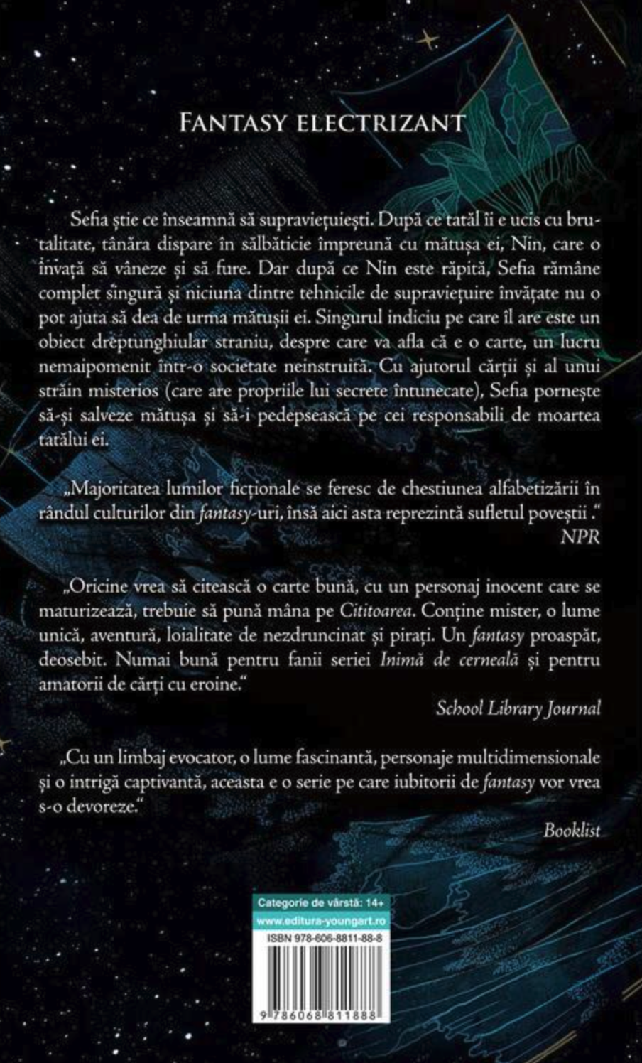 „Oricine vrea să citească o carte bună, cu un personaj inocent care se maturizează, trebuie să pună mâna pe Cititoarea. Conține mister, o lume unică, aventură, loialitate de nezdruncinat și pirați. Un fantasy proaspăt, deosebit. Numai bună pentru fanii seriei Inimă de cerneală și pentru amatorii de cărți cu eroine.” -- School Library Journal
