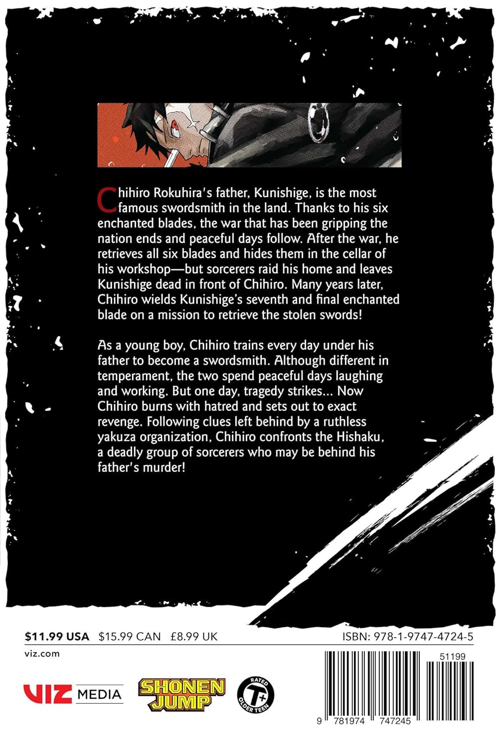 As a young boy, Chihiro trains every day under his father to become a swordsmith. Although different in temperament, the two spend peaceful days laughing and working together. But one day, tragedy strikes… Now Chihiro burns with hatred and sets out to exact revenge. Following clues left behind by a ruthless yakuza organization, Chihiro confronts the Hishaku, a deadly group of sorcerers that may be behind his father’s murder!