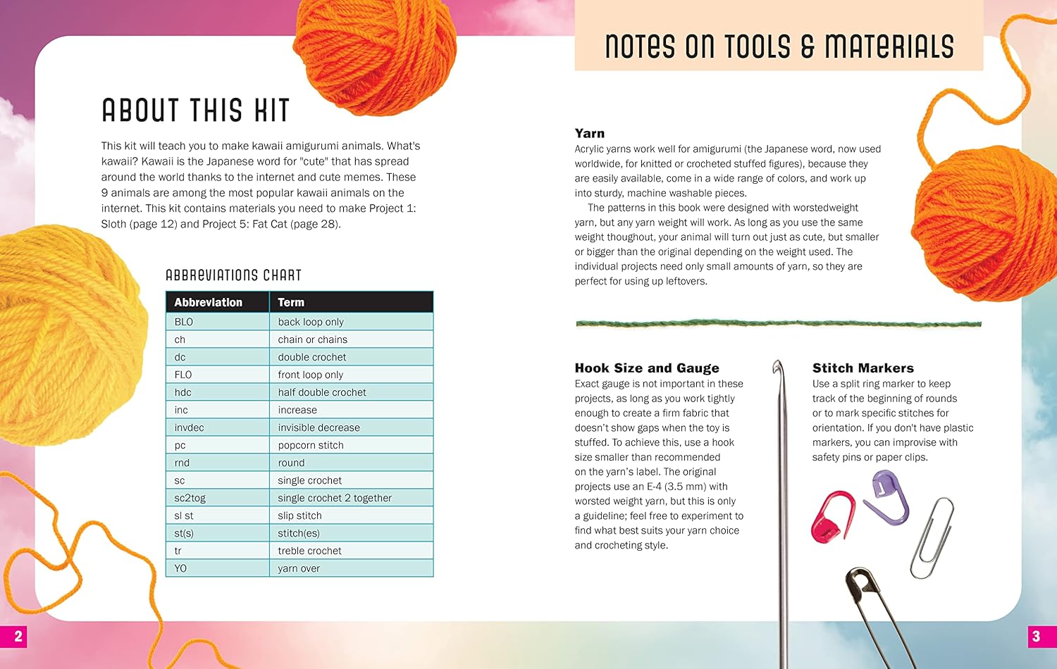 Learn to crochet the cutest animals with Kawaii Crochet Kit! This fun kit includes a 48-page instruction book and materials to make two projects, an adorable kitten and baby sloth.Pick up your crochet hook and stitch 9 different amigurumi animals including a corgi puppy, narwhal, and cockatiel.