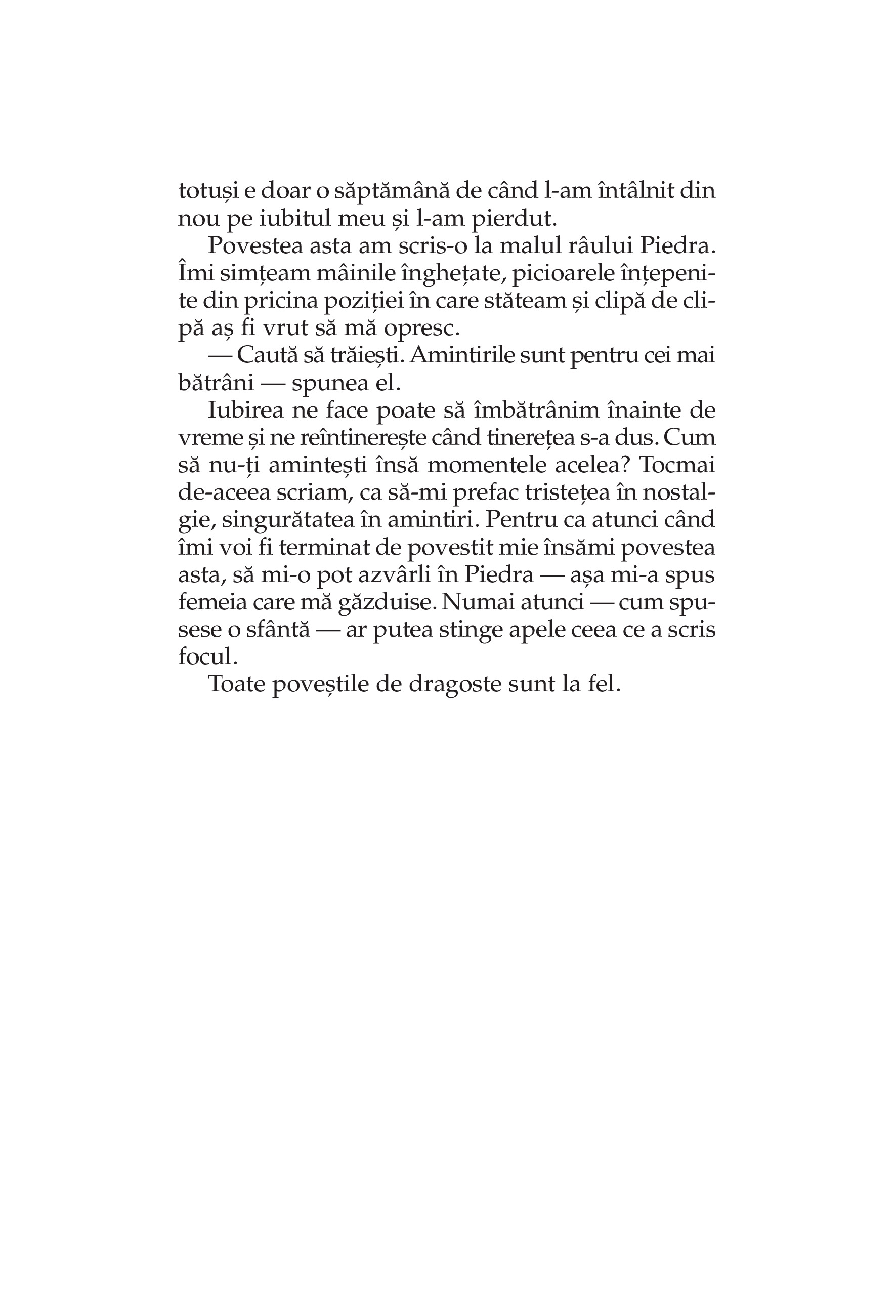 În poveştile de dragoste există întotdeauna ceva care ne apropie de eternitate şi de esenţa vieţii, pentru că ele conţin toate tainele lumii.