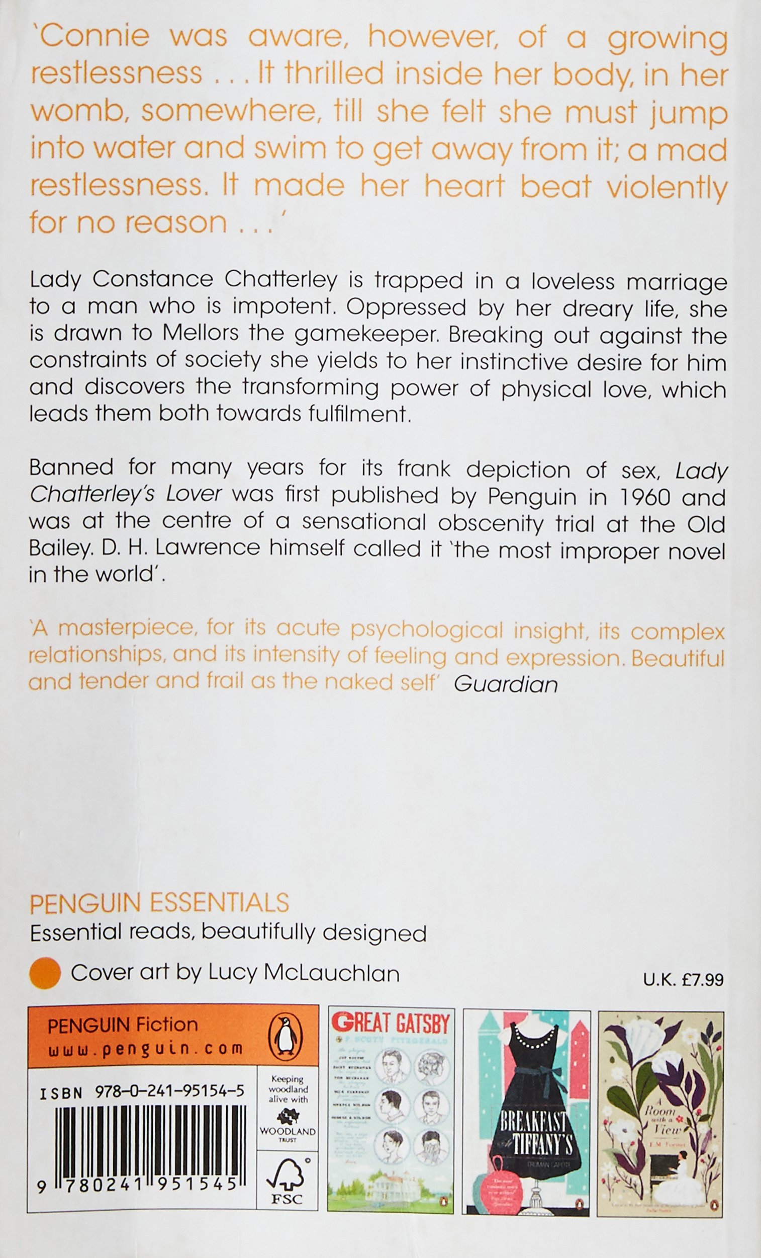 Banned for many years for its frank depiction of sex, Lady Chatterley's Lover was first published by Penguin in 1960 and was at the centre of a sensational obscenity trial at the Old Bailey. D. H. Lawrence himself called it 'the most improper novel in the world.