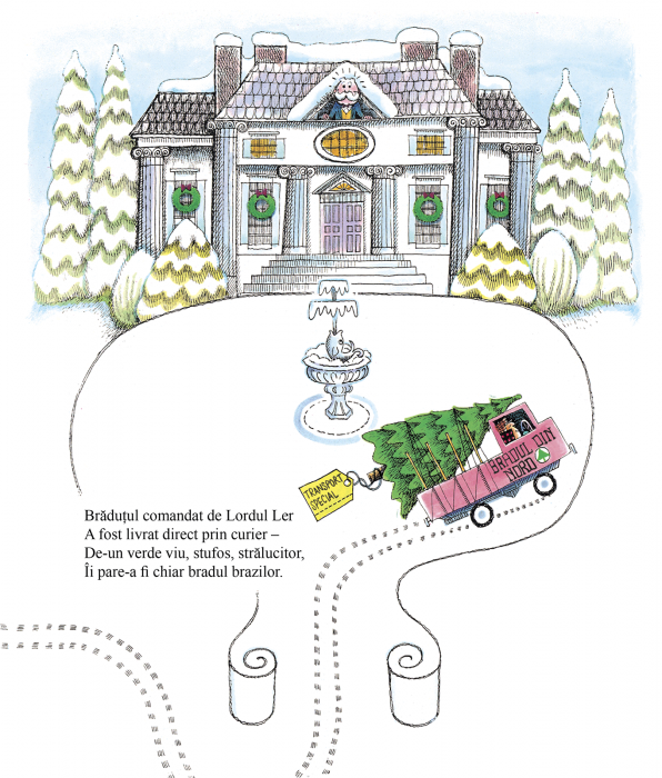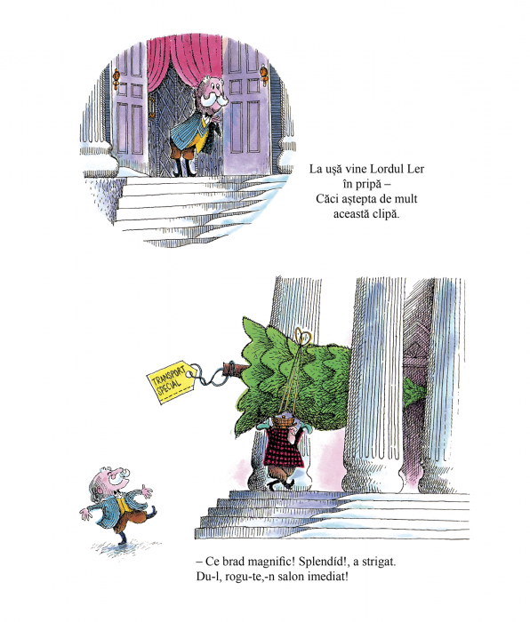 E ziua de ajun, iar Lordului Ler tocmai i s-a livrat brăduțul de Crăciun. Doar ca brăduțul e ditamai bradul, e „bradul brazilor”, și este prea înalt ca să încapă în salon. Așa că Lordul Ler îi taie bradului puțin din vârf, cât să se potrivească în casă. Vârful tăiat trece prin ajustări succesive, într-o istorie care se repetă, și ajunge să facă încojurul pădruii, din vizuină în vizuină, spre bucuria animalelor care îl găsesc.