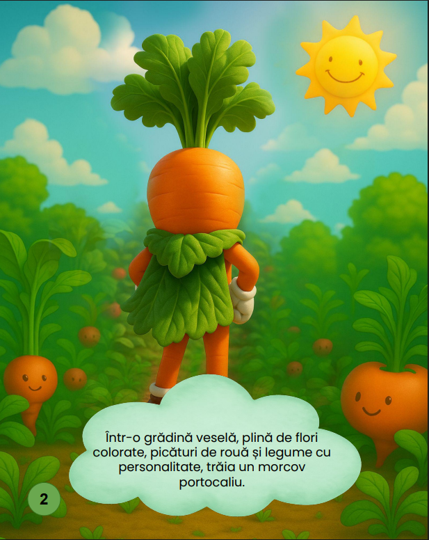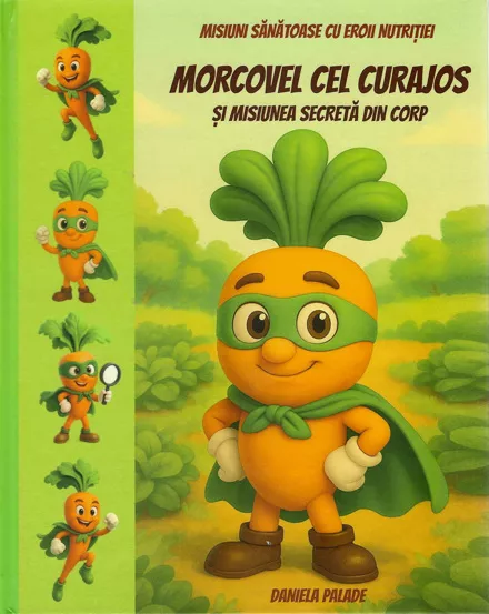 Cu umor bine dozat, replici savuroase și scene colorate, povestea îi arată copilului cum funcționează corpul și de ce un simplu morcov poate deveni un supererou cu impact real în viața lui de zi cu zi.