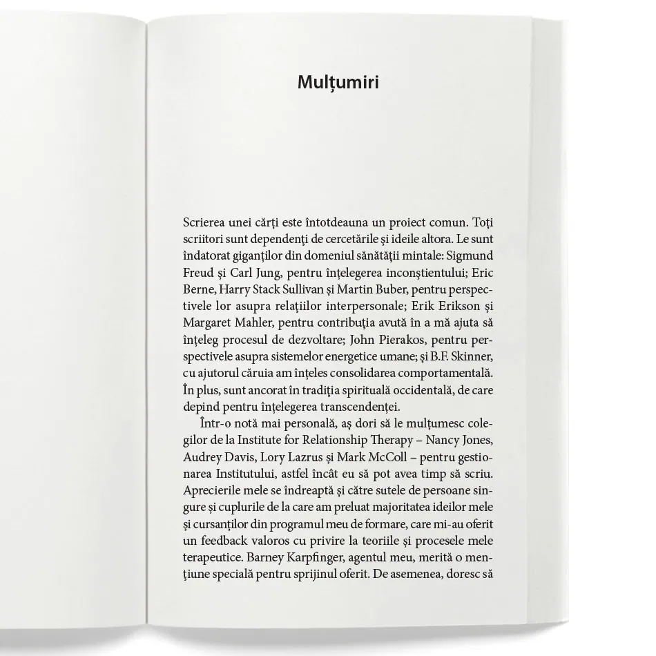 „Este o carte despre maturizare relațională, nu despre rețete rapide de «găsit» iubirea. Autorii ne invită să privim cu onestitate tiparele inconștiente, felul în care construim relațiile și responsabilitatea de a le îngriji. Mi-a adus claritate și blândețe și m-a făcut să mă opresc asupra așteptărilor pe care le punem pe celălalt și asupra propriei noastre disponibilități pentru intimitate. O recomand celor care își doresc relații conștiente, nu perfecte; fie că sunt acum într-o relație, fi e că se pregătesc pentru una.“
