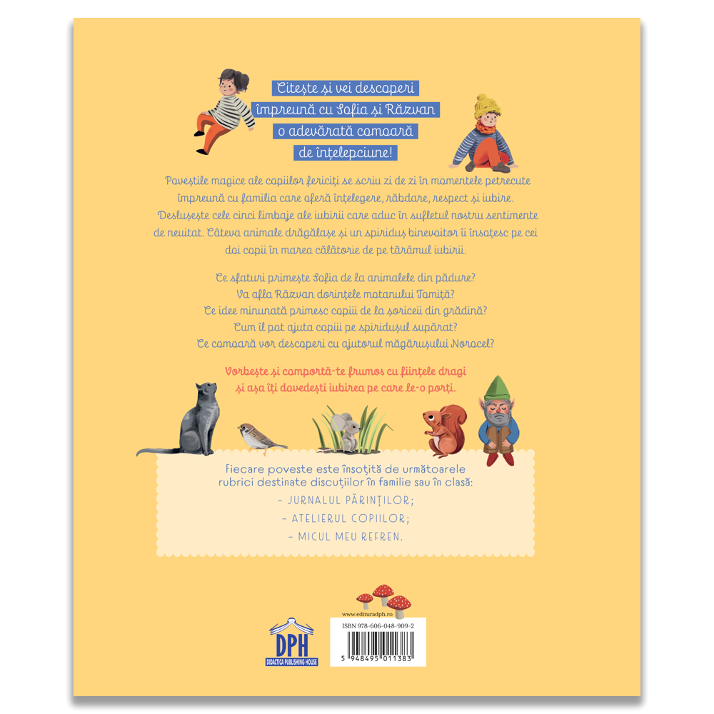 Povești magice despre iubire este o carte delicată și plină de înțelepciune, care îi invită pe copii să descopere cele cinci limbaje ale iubirii prin aventurile Sofiei și ale lui Răzvan.