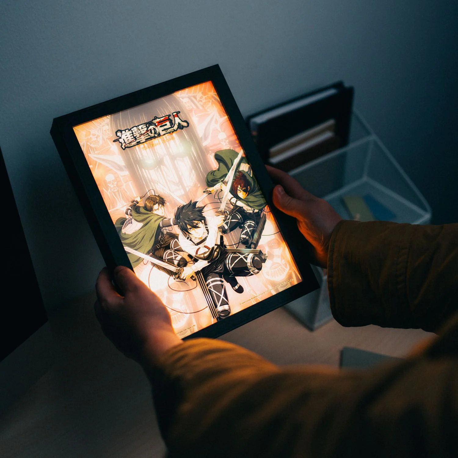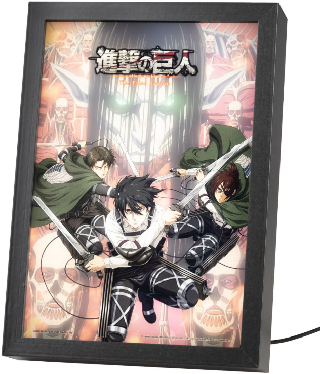 Cu un design uimitor inspirat de anime-ul de succes, această imprimare aduce la viață lumea epică Attack on Titan cu iluminare LED dinamică.