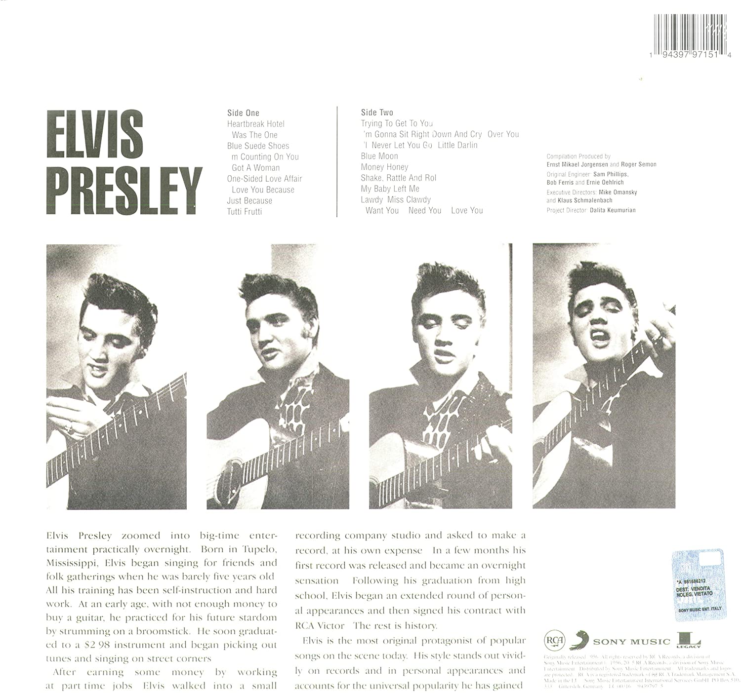 The debut album by the American rock and roll singer. Originally released in March 1956, the album features the singles 'Blue Suede Shoes', 'I Got a Woman', 'I'll Never Let You Go (Little Darlin')', 'I Love You Because', 'Just Because' and 'Money Honey'.